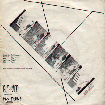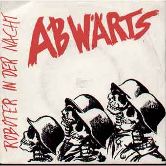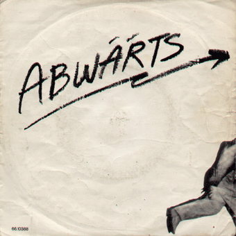 1980/ZickZack ZZ2 Computerstaat/Japan/Wir warten/Nach Haus/Moon of Alabama 1.Pressung mit GELBEN Label-Ettiketten und GROSSES MITTELLOCH, Cover öffnet zur Seite hin. Auf der Cover-Rückseite steht unter dem Rip Off Logo noch das NO FUN Logo. Alle weiteren Pressungen haben nur noch die Zick Zack Adresse aufgedruckt. Abwärts EP (No Fun). Fünf Stücke der Ex-Blender/Ex-Big Muff-Formation aus Hamburg. Einigen Leuten sind sie schon bei der Geräusche-Nacht im Dezember positiv aufgefallen. Verbessert haben sie auf jeden Fall ihre Gesangsparts; insgesamt lehnt sich für mich die Abwärts-Art zu sehr an Vorhandenes an: Erinnerungen an Velvet, Wire, an die Modern Lovers, und eine gewisse Tradition im sinne von Ton Steine Scherben ist wohl auch nicht zu verleugnen. Gut gefallen mir das Japan-Stück und die Klassiker-Verfemdung von Moon Of alabama mit Margit als Sängerin. Fünf Stücke als Debut vielleicht etwas zu viel. (Alfred Hilsberg, Sounds Nr.5/80) "Für mich die beste Hamburger Gruppe, am tollsten gefällt