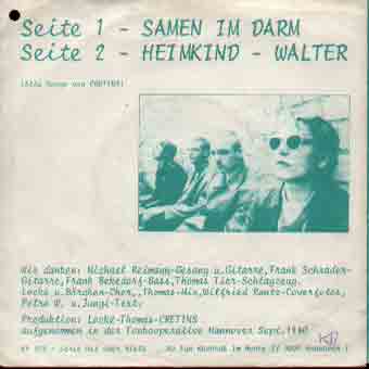 Samen im Darm/Heimkind/Walter "Hollow hat mir diese No Fun Single geschenkt, wahrscheinlich, damit ich sie positiv bespreche, weil ich die CRETINS bisher ja immer verrissen habe. Das wäre eigentlich gar nicht nötig gewesen, denn die Scheibe ist eine positive Überraschung: die 1.Seite ist ein totaler Ohrwurm, der mir tagelang nicht aus dem Kopf gegangen ist, über den Text kann man sich mal wieder streiten, da die Single aber leider nicht übermäßig gut produziert ist, versteht man (leider?) nicht alles. Bei "Heimkind" lohnt es sich dann auch direkt mal auf den Text zu achten, leider musikalisch nicht so stark wie das erste Lied. "Walter" ist da wieder ein typischer CRETINS Song mit fiesem Text. Alles in allem trotzdem eine gute Single." (Alles Tot Nr.8, 1980)