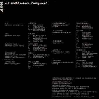 "Underground Hits 2" LP 1983/AGR 0027 Angry Samoans: Hot cars/Inside Youth Brigade: Full force/Care Meatmen: Meat crimes/Mr.Tapeworm FU´s: Daisy Chain/FU cAnalterror: Chaot?/Roter Sand Spux: Hasenjagd/Letzte Generation Government Issue: Teenager in a box/GI/Twisted views Hüsker Dü: Deadly skies/Lifeline Adrenalin O.D.: Hijack/White hasle Deutsch/Amerikanischer Sampler