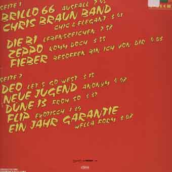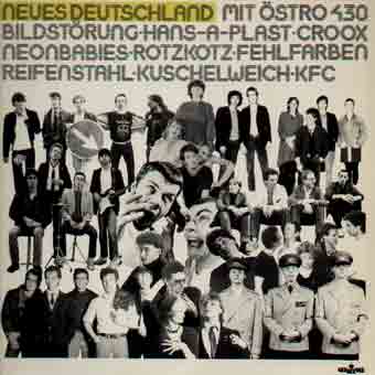 "Neues Deutschland" LP 1981/GeeBeeDee Östro 430: Sechzehn Bildtörung: Retortenkinder Hans-A-Plast: Spielfilm Neonbabies: Spass muss sein Rotzkotz: Tante EMI Fhelfarben: Wie bitte was Reifenstahl: Je´t air Kuschelweich: Kein Bock KFC: Wie lange noch Croox: Do the Dispo-Her damit +Textinnenhülle