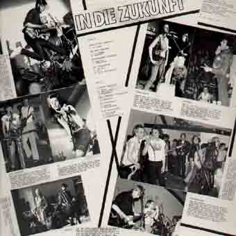 "In die Zukunft" LP 1980/Konnekschen KON LP 3 Hans-A-Plast: Es brennt Big Muff: Scheißegal/Blackout Geisterfahrer: Magazine/Zweischlag KFC: Für Elli/PVC/Folta für Travolta Buttocks: Lifer/Emetic girl/Eurovision Din A Testbild: Hiroshima ZK: Heimweh/Hochspannung Male: Vaterland/Sirenen/Risikofaktor 1:X Geräusche für die 80er Jahre. So heißt der Titel des Festivals (Hamburg, Markthalle, 29.12.). das die Vielfalt der neuen Welle in Westdeutschland vermitteln und durch weniger Quantität Spaß machen soll. Im Gespräch für Auftritte sind bisher Bildstörung (Frankfurt), P1/E (Westberlin), Minus Delta T (Düsseldorf), Coroners (Hamburg), Mittagspause (Düsseldorf), Rotzikotzi (Hannover), Kiev Stingl (Hamburg) und eine Band aus der Schweiz. Das genaue Programm des Festes wird auf Plakaten und Hanzetteln bekanntgegeben, die auch einen weiteren wichtigen Anlaß für die Veranstaltung bekanntgeben: der Erlös von In die Zukunft soll für einen neuen Club in Hamburg bestimmt sein, der zum Treffpunkt von Bands und Fans aus dem In- und Ausland werden soll. Zum gleichen Zweck wird auch der Erlös eines Live-Mitschnittes des Festivals verwendet. (Sounds Nr.12/79)