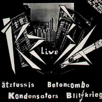 "KZ 36 live" LP 1980/Eigenproduktion Ätztussis: Linke Spießer/Bullen/Mollies und Steine/Liebeslied Betoncombo: Gropiusstadt-Endlosfuck/Einigkeit/Eltern/Nazis raus/Kreuzberg Blitzkrieg: Freies Land/Eure Zeitung/Supekühl/Weg mit den Bullen/Ohne Zukunft Kondensators: Maloche/Ab ins Beerhouse 1,2,3/Verpiss dich du nervst mich +Text/Infoheft KZ 36 Live (Sampler ohne Bestellnr.). Swiss Wave The Album (ASL-3301 BRD Vertireb Rip Off). Zwei Sampler wie Tag und Nacht; eine fast abstrakte Cover-Grafik auf dem Schweizer , eine messerscharf wirkende Großstadt-Collage auf dem Berliner. Wie Tag und Nacht auch das sich vermittelnde Lebensgefühl: Wenn schon alles in Arsch geht, wollen wir wenigstens unseren spaß haben, sagt die Gruppe vom (Kommunikationszentrum) KZ 36 aus Kreuzberg. Um die interessante und vielseitige Swiss Wave-Szene einem breiteren Interessentenkreis zugänglich zu machen, haben wir uns entschlossen, ein Album mit sieben der originellsten und wichtigsten Bands der Schweiz zu produzieren schreibt Off course-Records aus Zürich. Deutsche Texte, live aus dem KZ in Berlin, Texte über ihre Alltagskämpfe ihre Lebenssituation. Ihre Ratlosigkeit, ihre Perspektiven vom Krieg in den Städten. Und aus der Schweiz? Bis auf zwei Ausnahmen von Grauzone voller Harmlosigkeit und spaß, englische Texte; englische Einflüße bis hinein in die Musik, die letztendlich hervorragend produzierte, moderne Unterhaltungsmusik ist. Beide Produkte sind sirgfältig gemacht, auf ihre Weise. Ein weiterer Vergleich, vor allem auf der musikalsichen Ebene, würde die grundsätzlichen Unterschiede nicht mehr berücksichtigen. Der KZ-Sampler ist ein schnörkelloses Punk-Album, das bei aller gebotenen Zurückhaltung gegenüber den dort vertretenen politischen Positionen wie kein anderer Sampler in der BRD das Lebensgefühl Jugendlicher widerspeigelt. Mir gefallen am ehesten die Berliner Gruppen Ätztussis und Beton Combo. Andere Qualitäten hat die Schweizer Zusammenstellung. Dem Anspruch der vielseitigkeit, ein Novum für das Land, ist diese Produktion gerecht geworden: Von Elektronik (Grauzone), über Fun-Rock (Liliput) bis zu leicht angestaubtem, aber perfektem RocknRoll a la Rudolf Dietrich und der härteren Fraktion, vertreten durch Mothers Ruin und die inzwischen aufgelösten Sick. Eine aufwendig, aber für den internationalen Markt produzierte Platte, auf der für meinen Geschmack die Spontanität und die Querschläger fehlen. Ähnlich wie die Hamburger Sampler sind diese beiden Dokumente für die Zukunft. Der eine dürfte eher im Archiv des Verfassungsschutzes, der andere bei jedem Plattensammler und Schweiz-Fan stehen. (Ahmet Tell, Sounds Nr.11/80) "Absoluter Schrott! Was soll diese Platte? Mehr als eine trotzige Gegenreaktion auf die restliche Berliner New Wave-Szene ist sie wirklich nicht! Wer die Platte aufgenommen/abgemischt hat, muß ein Nullchaot gewesen sein, selbst zweitklassige sonstige Livebänder, der auf der Scheibe vertretenen Bands, haben eine bessere Qualität. Hier hört man fast ausschließlich nur Drums und Gesang, der Rest verschwimmt im Hintergrund. Darüber hinaus scheinen KONDENSATORS und BLITZKRIEG einen besonders schlechten Tag gehabt zu haben. Schade drum!" (Bobby Blitzkrieg, Alles Tot Nr.8, 1980)