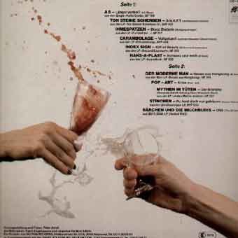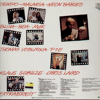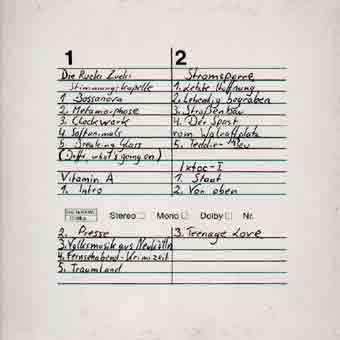 "Licht & Schatten" LP 1981/Schäumer & Voigt SV1 Der Moderne Luftkampf: Fieber System: U-Bahn/Sprüh es an Die Gelbs: Intermezzo P1/E: Nice/49 sec.Romance (Disco-Mix) Tank of Danzig: Holocaust/Brainwar The Unknown: Radiowar Rubberbeats: These boots are made for walkin´ Django & Maria: Rock´n Roll is bigger than all of us