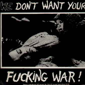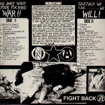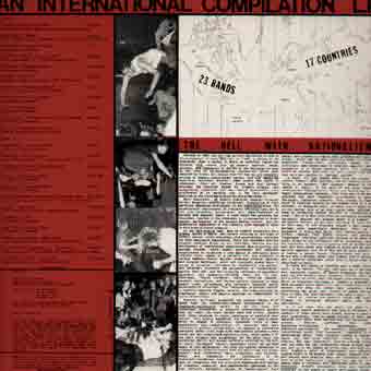 "P.E.A.C.E.-W.A.R." 2xLP 1984/R Radical Articles of Faith: Up against the wall Gism: Endless blockade for the pussyfooter Neon Christ: Ashes to ashes Kalashnikov: Schluters Kabinett Cause for Alarm: Time will tell Local Disturbance: No U.S.A. Unwarranted Trust: Honour´s calling Wretched: Mai arendersi O.D.F.X.: Drop the A-bomb on me Declino: Inutile trionfo Dicks: Hope you get drafted BGK: Arms race Crass: It´s you Upright Citizens: Swastika Ratss False Prophets: Banana Split Republic Mob 47: Nuclear attack Offenders: Face down in the dirt Contrazione: Sbarre Scum: So much hate Los Violadores: Viejos pateticos Deadlock: Sometimes P.P.G.: Will it ever end? Trash: Peace of what Vicious Circle: Police brutality Condemned to Death: Gartlands Pit Negazione: Non mi dire DOA: America the beautiful D.R.I.: Snap Porno Patrol: Jump back Treason: Drop out Shit S.A.: Abortos Septic Death: Silence CCM: Life of punishment Peggio Punx: No mai Proletariat: An uneasy peace Conflict: Bomb Iconoclast: Battlefield Pandemonium: Pay for shit Dead Kennedys: Kinky sex makes the world go round Boskops: Skorbut Subhumans: Rats White Lie: Peace officer Wargasm: R.A.T./Pentagone Slaughterhouse 4: Four more hours Execute: Finale Reagan Youth: Reagan Youth Impact: The man goes on Butthole Surfers: 100 million peole dead Kangrena: Ataque Porcelain Forehead: Will Amerika Barely Human: No mercy no war RAF Punk: Contro la pace contro la guerra Zenzile: Moment by moment/Exiled shadows M.D.C.: Missile destroyed civilization Internationaler Sampler mit Staraufgebot. Kommt mit dickem Beiheft.