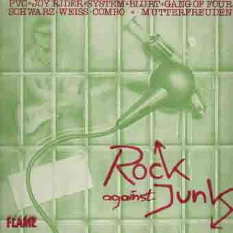 "Rock against Junk" LP 1981/Flame PVC: Wall city rock Joy Rider & PVC: Keep a knocking System: Dealer Schwarz-Weiss Combo: I thank you/Save it Mutterfreuden: What I like/Sounds of silence Gang of Four: Ditch/Return the giftTIf I can keep if for myself Blurt: Ma mother was a friend of an enemy of the people/Puppeteers part 2 Internationaler Sampler