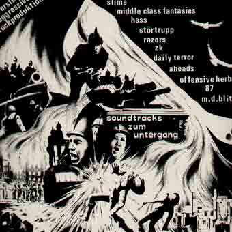 "Soundtracks zum Untergang" LP 1980/AGR 1 Middle Class Fantasies: Helden Offensive Herbst 87: Selbstmord Hass: Ihr Helden Aheads: Fact 81/Minuteman Slime: Polizei-SA-SS ZK: Hurra, ich bin genormt Razors: Disco M.D.Blitz: Schizophrene ZK: Immer wieder besetzt Middle Class Fantasies: Publikum Razors: I hate Daily Terror: Führer Störtrupp: Feiertag Hass: Hoffmann Slime: Keine Führer Störtrupp: Karriere +Textbeilage