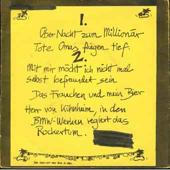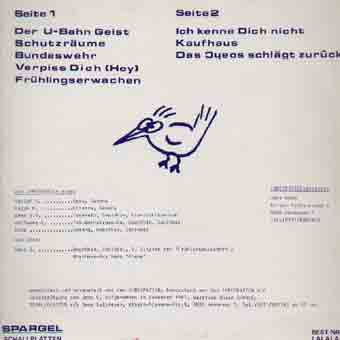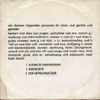 Steht ihrer EP in nichts nach. Kommt mit Info/Textblatt. Zweitpressung 1985 auf Neuland Records mit schwarzem Frontcover und einer neuen Coverrückseite. "Im Fernsehen läuft ein"Zauberhaftes Biest", aus