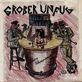 Kanibalen/Kalte Getränke/Opelkapitän/Rückwaärts/Gesox/Saubermann/Wegwerflyrik/Gosse/Nach mir die Sintflut/Urwüste/Jeder tut seine Pflicht/Durchhalten/Bomberkommando/Endwüste Wie steht es im Kampf der Industrie und den Independents? Zählt überhaupt noch jemand mit? International hat die Plattengroßindustrie zwar leicht aufgeholt, ihre deutschen Projekte liegen aber weiterhin hoffungslos daneben. Unwichtige Bands produzieren überflüssige LPs. In meiner Sammlung finden sich zwei Ausnahmen von dieser Regel. Ansonsten spielt sich Hörenswertes hierzulande auf den unabhängigen Labels ab. Wie jetzt auf Konnekschen. Mach für die letzte Nummer etwas, was dir am Herzen liegt, riet die Redaktionsassistentin. Der Grobe Unfug liegt mir am Herzen. Der Bereich der Basisarbeit droht in unserem Kulturbetrieb zu verkümmern. Für drei Mark Eintritt wurde ich im Jugendkeller St.Georg Zeuge, wie man dieser Tendenz entgegenwirkt. In einer Atmosphäre, die an selige Krawall 2000-Zeiten erinnerte, erteilte der Grobe Unfug eine Lektion in Beat und Glück. Die Gruppe existiert seit zweieinhalb Jahren und veröffentlichte bereits eine EP, auf die hier noch einmal nachdrücklich hingewiesen sei. Im Sommer 1982 wurde BEAT UND GLÜCK aufgenommen. Die musikalische Palette reicht vom Punk bis zum RocknRoll. Die meisten Stücke sind eingängig und geradeaus, eben Beat. Dazu spielt der Spaß vor allem live in ihrem Konzept eine entscheidene Rolle. Der Grobe Unfug als die deutschen Adicts? Als die Hamburger Toten Hosen? Unter den vierzehn Titeln befinden sich kaum Ausfälle. Hitverdächtig sind mindestens fünf Nummern: Kannibalen, Opel Kapitän, Saubermann, Jeder tut seine Pflicht und Durchhalten. Ich verzichte darauf, an einigen Details herumzumäkeln. Insgesamt ist BEAT UND GLÜCK eine empfehlenswerte Platte. Zum Beispiel für Leute, die auch an Notdurft Gefallen finden. (Alf Burchardt, Sounds Nr.1/1983)