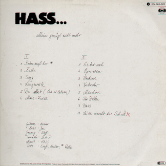 Hamburg/Meine Stadt/Tu was du willst/Neues aus Ost und West/Ich glaubs nichts mehr/Politik/BND/Moderne Welt/Nacht + Tod/Der Staatsbürger/Was du willst II/Wild Thing/1977