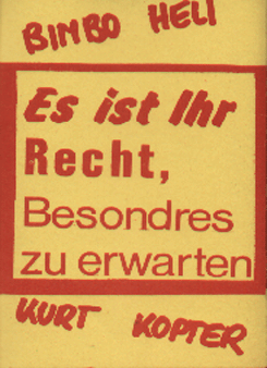 BIMBO HELI / KURT KOPTER (Konstanz) : "Es ist Ihr Recht, Besonderes zu erwarten" 1981/Red Avenger Productions RAP 002 |