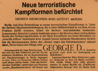 GEORGIE D. (Bonn) : "Diedrich Diedrichsen wird getötet werden" 1982/Datenverarbeitung DATA 13 Georgie D von PENSION STAMMHEIM im Alleingang. Große Klasse!!! |