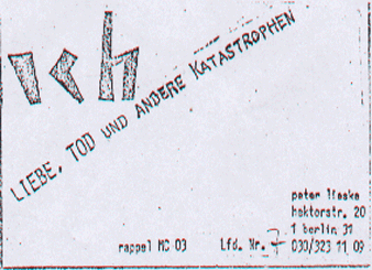 ICH : "Liebe, Tod und andere Katastrophen" 1982/Rappel Mc03 |