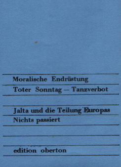 MORALISCHE ENDRÜSTUNG / JALTA UND DIE TRENNUNG EUROPAS (Tübingen): "s/t" 1982/Edition Oberton C-60 mit 2 Tübinger Bands aus dem Hesselbach Umfeld. |