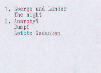 POISON DWARFS (Schledehausen) : "Angst und Ekstase" 1981/Eigenproduktion C-40 made in Wohnzimmer. |