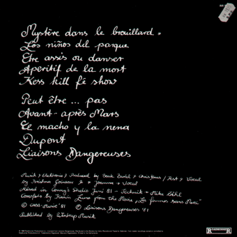 NICHTS (Düsseldorf):"Tango 2000" LP 1982/WEA 58430 Tango 2000/Ein deutsches Lied/Schwarze Gedanken/Gitarrero ade/Weiße Wände/Nachts/Ich bereue nichts/Licht aus/Lieber annonym/Freitag, der 13./Ein stiller Gruß/Nichts live