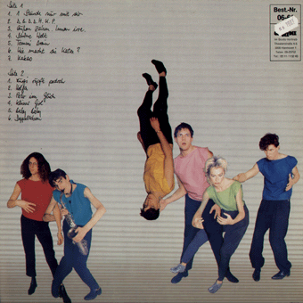 NICHTS (Düsseldorf):"Made in Eile" LP 1981/Schallmauer 008 Radio/Eingeschlossen/Hallo Kartoffelsalat/10 Bier zuviel/Allein zuhaus/Scheiße/Wer bist du/Made in Eile/Nichts Hier spielen u.a. Tobias Brink (KFC) und Michael Clauss ('KFC' und 'Belfegore'). "[...] Zum Beispiel Nichts. Die Band ist nach der Trennung des KFC, also dieses Jahr, entstanden. In nur drei Monaten verkaufte sich ihre Debut-LP MADE IN EILE fast 40 000 Mal. Ihre Schallplattenfirma Schallmauer vertreibt das Album über Boots. Von der neuen deutschen Welle möchte Micki von Nichts nichts mehr wissen: 'Was mit dem KFC geendet hat, hat für mich die ndW beendet.' Er rechnet seine Band stattdessen zum Hard Rock Lager. 'Warum nicht, wir spielen schnell und machen mehr Hard Rock als jede andere deutsche Band.' Wichtig auch für ihn, die Fäden selbst in der Hand zu halten, das Verhandeln ihrer kleinen, unabhängigen Plattenfirma Schallmauer zu überlassen. Nichts, die momentan ihre zweite Platte aufnehmen, erscheinen damit und wahrscheinlich auch mit der übernächsten LP wieder auf Schallmauer. Sie sind und bleiben auf ihrem Label, weil - so Micki: 'Wir hier mehr Einfluß haben. Der Lothar (Schallmauer-Chef) weiß unsere Fähigkeiten genau einzuschätzen. Und vor allem nimmt er sich keine Sachen raus, die sich ne große Firma ohne weiteres rausnehmen würde. Wir meinen, daß die Industrie alles kaputt macht. Die kaufen alles ein, ohne den Durchblick zu haben. Die CBS beispielsweise. Die denken jetzt, wir wären bei denen, nur weil wir da ne Single rausgebracht haben. Dabei halten wir gar nichts von denen.'Wer die Vertriebsrechte für die nächste LP bekommt steht noch nicht fest. 'Sicher ist nur', so Lothar, der Labelchef, 'daß es diesmal wahrscheinlich ein großer Industrie-Vertrieb wird. Es ist mittlerweile eine Größenordnung entstanden, die man mit einem großen Vertriebsnetz einfach besser in den Griff bekommt. Aber die Band bleibt weiterhin auf unserem Label.' Die Single 'Radio' auf CBS war nur ein kurzes Zwischenspiel. Auf Anraten des Musikverlags der Firma Boots entschlossen sich die Band und Schallmauer, die Single rechtzeitig zur 'Bananas'-Fernsehsendung über CBS zu vertreiben. Und immerhin sind bis heute davon 10.000 abgesetzt. [...]" (Thomas Buttler, Musikexpress Nr.1/Januar 1982) "Neues und Böses über Düsseldorf. Nichts sind auf dem Weg nach oben. Mit der 1.FC Köln-Methode. Weil der große Gegner fehlt (wie das brasilianische Genie im Fußball). German Way Of Life. Strebsamkeit, Arbeit. Die Ideal-Linie. Nichts sind eine dieser unzähligen Bands, die auf den Erfolg hoffen. Ihr Bassist Chris (1978 erster deutscher Meister im discotanzen, kein (!) Popper und Tänzer bei der Plattenküche und Bananas) bat Bananas-Regisseur Rolf Spinrads um einen TV-Auftritt der Band. Der hört sich den Song Radio an und ist begeistert. (Auf diese Art kommt man bei den muffigen deutschen TV-Anstalten mal ins Fernsehen!) CBS wird dadurch aufgeschreckt, bringt das Stück als Single raus und verkauft in 6 Wochen zehntausend Stück. Nichts, die nette Band von nebenan, kommt überall, bei (fast) jedem gut an, bei Hippies/Ideal-Fans (siehe die durchweg guten Presseberichte über sie!), Punks, Poppern/Discofans, bei Kfz-Mechanikern, Maurern und Eltern (was sie unheimlich stolz macht! 20 Millionen Arschlöcher können sich nicht irren!). Sie erzählen stolz, das sie noch bei jedem Konzert voll abgeräumt haben, mit durchlaufendem, polterndem Rhythmus und (Manchmal) grauenhafter Kraut-Heavy-Gitarre, die das bißchen Pop/Melodie der Klein-ädchen-Trällerstimme fast zudecken. Und die Texte sind gewollt lustig (ohne Charme) oder ernst (unfreiwillig komisch). Eingeschlossen ausgeschlossen (Originalton). Wo ist das bewegende Gefühl? Nichts fehlt das Genie/die Melodramatik von Heaven 17 oder der Pop/Kitsch von Human League. Ich habe sie einmal im Konzert gesehen, sie sind die Status Quo des Heavy-Pop, 1-2-3 wir sind dabei, alle mitschunkeln, mit den dazugehörigen Animiersprüchen wie n bißchen eng zum Pogen, glaub ich oder Einen Applaus für Herbert, unseren Mixer. Gib dem Publikum, was es will, nicht, was es braucht! Man kann es sich wenigstens noch schmerzfrei anhören (zumindest die besseren Stücke), was ja für eine deutsche Band leider immer noch ein Lob ist. Wenn auch ihr bestes Stück eine deutsche Fassung des Musical-Hits Hernandos Hideaway war. Und für den normalen, stumpfen Deutschen (DICH!) gibt es einen unschlagbaren Grund, sie zu lieben, die Platten zu kaufen (die erste LP ca. 35000 mal): sie sind genauso langweilig wie du/das Leben. Kauf ihre Musik, ein eigenheim und ein Mittelklasseauto. Ihr Fernsehauftritt in Bananas war aber gut/unterhaltsam/lustig. Die Band vor weißer Wand in schwarzer, breitbeiniger Heavy-Lederpose (was immer für einen Lacher gut ist und der deutschen Bierzelt/AC/DC-Mentalität entgegenkommt) und die Sängerin als schwarze Debbie Harry (mit der gleichen Figur/den gleichen Beinen). Und ihr Song Radio ist nett/lustig/lalala. Für deutsche Verhältnisse absolut erste Liga! Internationaler Klasse nicht gewachsen. In der gleichen Sendung singt Catherine Deneuve (mit unaufdringlicher weiblicher Eleganz) mit Altbock Serge Gainsbourg (der mich, abgeschlafft/melancholisch, an Alfred Hilsberg erinnerte) Ces petits rien (ein dunkles Je taime-Nachspiel), aber die Franzosen haben sowieso (mehr) Geschmack, und der unglaubliche, exzentrische Iggy Pop (mit pubertärer Jerry Lewis-Verbitterung und Alfred-E.Neumann-Zahnlücke) singt Bang Bang, Romantik und Abenteuer mit Rüschenhemd, riesigem Ohrenschmuck und verwaschenen Jeans. Wie ernst Nichts das sehen (und der deutsche Käufer teilt ihre Meinung): sie finden C.Deneuve schlicht lächerlich und Iggy peinlich kommerziell. Und nehmen sich (zu) ernst! Auch wenn sie es nicht zugeben wollen. Nette junge gesunde Leute aus der Nachbarschaft werden vom Erfolg überrascht und können ihn nicht verdauen (wie sie selbst zugeben). Gerade lief in der Bild die große Elvis-Seri