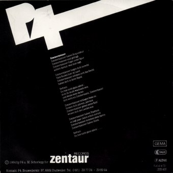 P4 (Saarbrücken):"Zimmermänner" 7" 1984/Zentaur Records Zimmermänner/Why