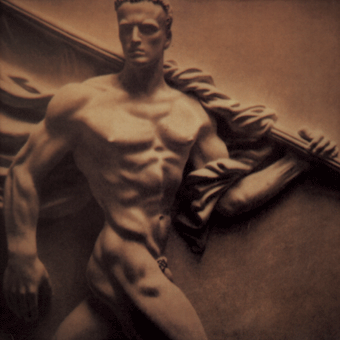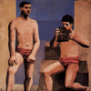 Linken einen Bückling, in den rechten ein paar Pinsel, gerade ein