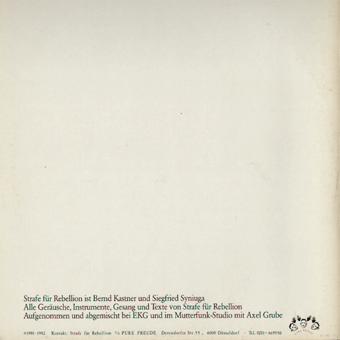 STRAFE FÜR REBELLION (Düsseldorf):"s/t" LP 1982/Pure Freude PF22CK11 Bum Bum/Siamang/Amüsierköpfe/Portuguese People/Blaue Mig/Lo Stato Presents Politico E Morale/Irrsinniger Preis/Fliegen fressen/Nie haben/Argentinien