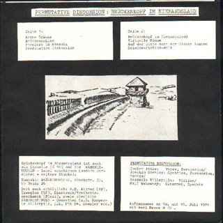 PERMUTATIVE DISTORSION (P.D.) (Mainz):"Brückenkopf im Niemandsland" 7" 1981/Eigenproduktion RP17.128 Keine Träume/Brückenschlag/Pioniere im Einsatz/Permutative Distorsion/Brückenkopf ins Niemandsland/Virtuelle Räume/Auf der Suche nach der blauen Lagune/Science-Fiction-Welt
