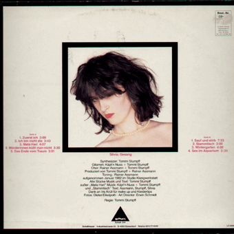 SILVIA (Düsseldorf):"s/t" LP 1982/Schallmauer SCHALL014 Zuerst ich/Ich bin nicht die/Mata Hari/Mörderinnen küßt man nicht/Das Ende vom Traum/Sauf und stirb/Stammtisch/Wintergarten/Sex im Aquarium Komposition und Musik von Käpt'n Nuss aka Ferdinand Mackenthun und Tommi Stumpf (beide 'KfC').