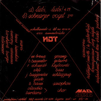 NDT : "Liebi Liebi" 7" 1984/Mad Records Liebi, Liebi/Schwarzer Vogel
