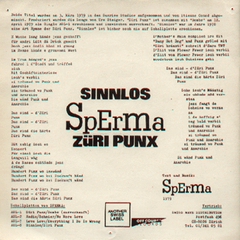 SPERMA : "Sinnlos" 7" 1980/Another Swiss Label ASL 8 Sinnlos/Züri Punx