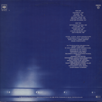 TICKETS (Genf ) : "s/t" LP 1980/CBS Electricity/Oh Baby/Can´t feel/Just don´t know/Take all the Love/What are you doing/Nothing but the Rain/Little Girl/Too many B.S.´s/Your Love/Love on the Rocks/Just a feeling Powerpop