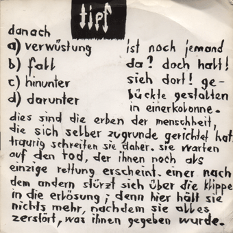 TIEF (Basel) : "Danach" 7" 1984/Winterschatten 002 Verwüstung/Fall/Hinunter/Darunter Sehr düsterer Endzeit-Punk